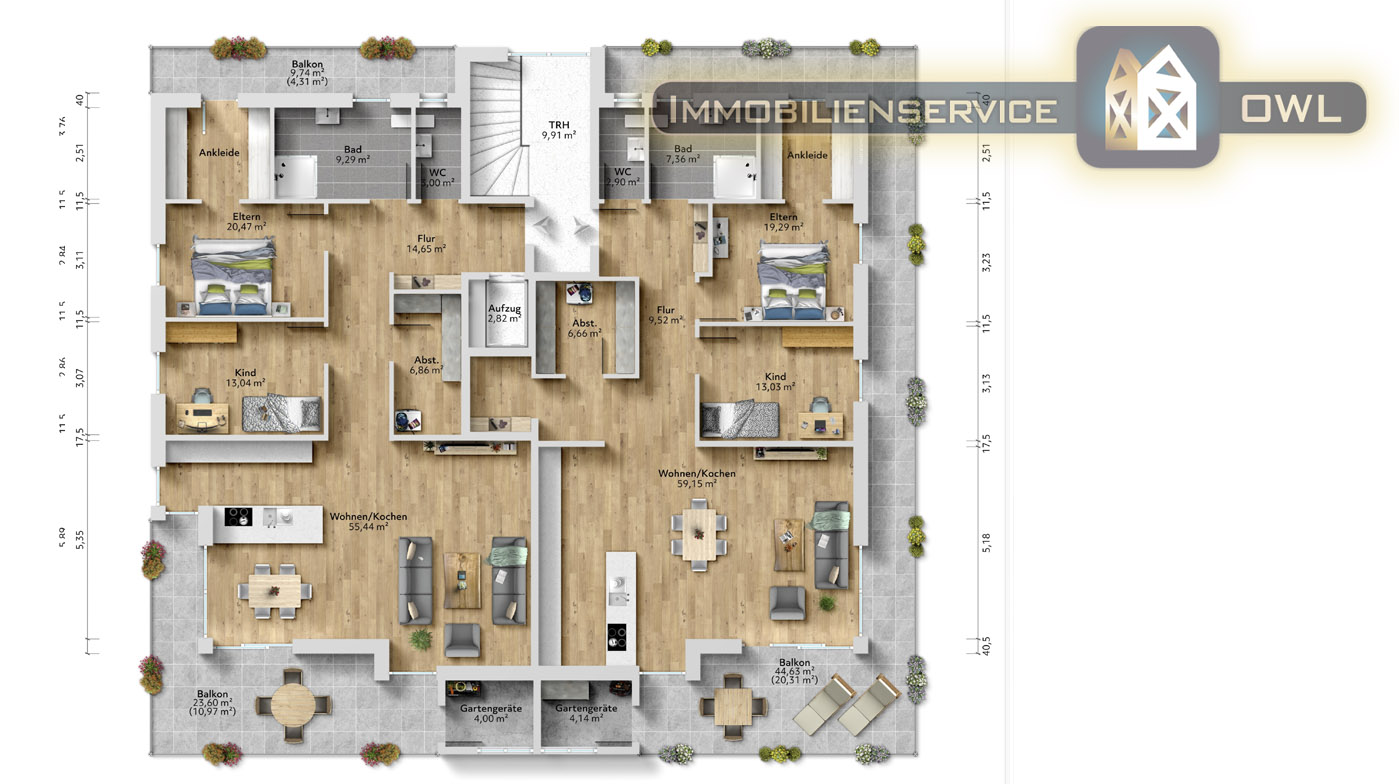 Erdgeschoss: Hier entstehen helle Wohnungen mit großzügigen Terrassen und Privatgärten. Besonders Familien profitieren von den funktionalen 4-Zimmer-Grundrissen mit ca. 117 m², während kompaktere 2-Zimmer-Wohnungen mit ca. 74 m² ein attraktives Zuhause für Singles und Paare bieten.