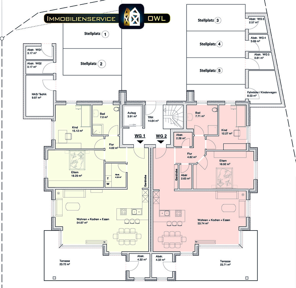 Hier entstanden gerade insgesamt 5 Neubau-Wohnungen mit gr. Terrassen und Gartenteilen im EG, bzw. großzügigen Südbalkonen und ein Penthouse Flat mit 142 qm 360° View bis zur Werre und Sielpark, wie es sie in dieser Form kaum wieder zu finden gibt!